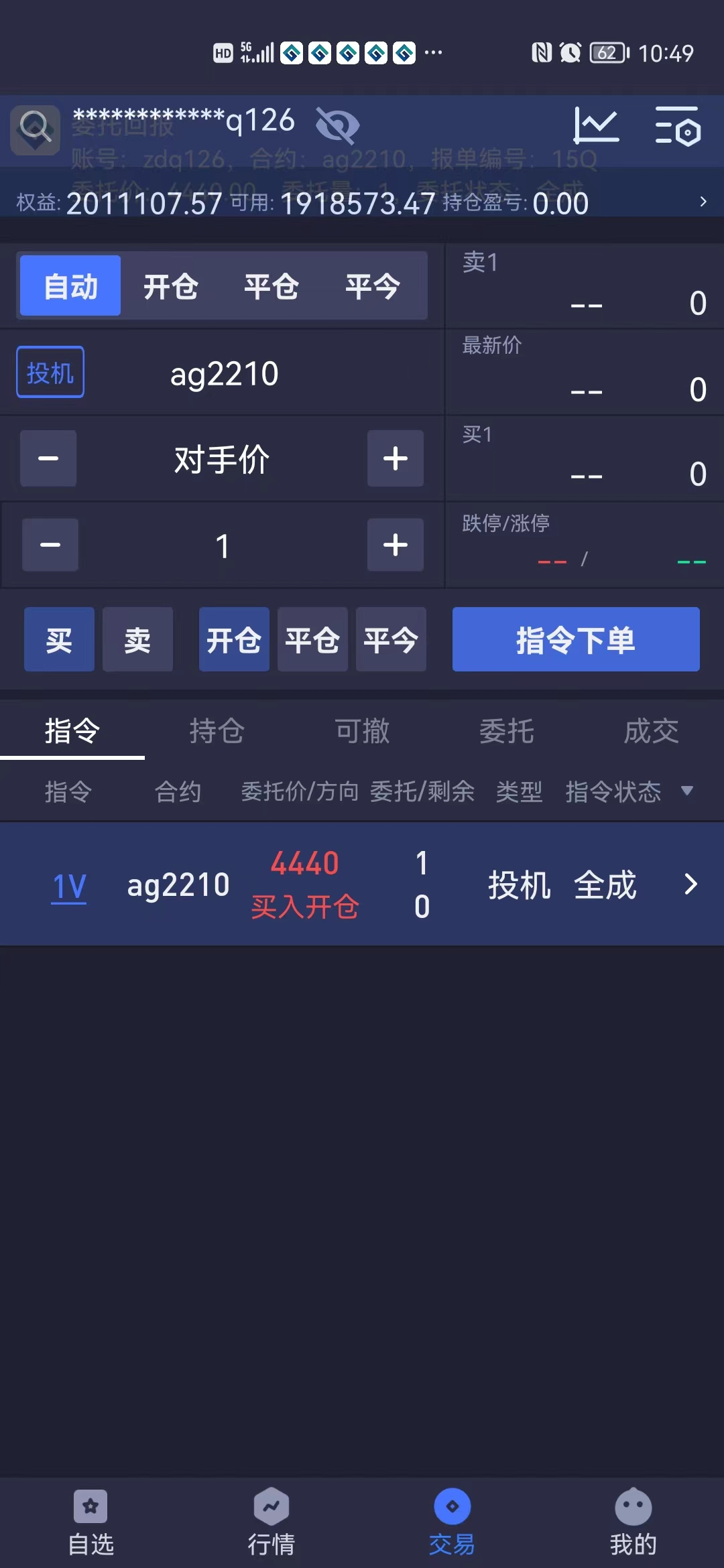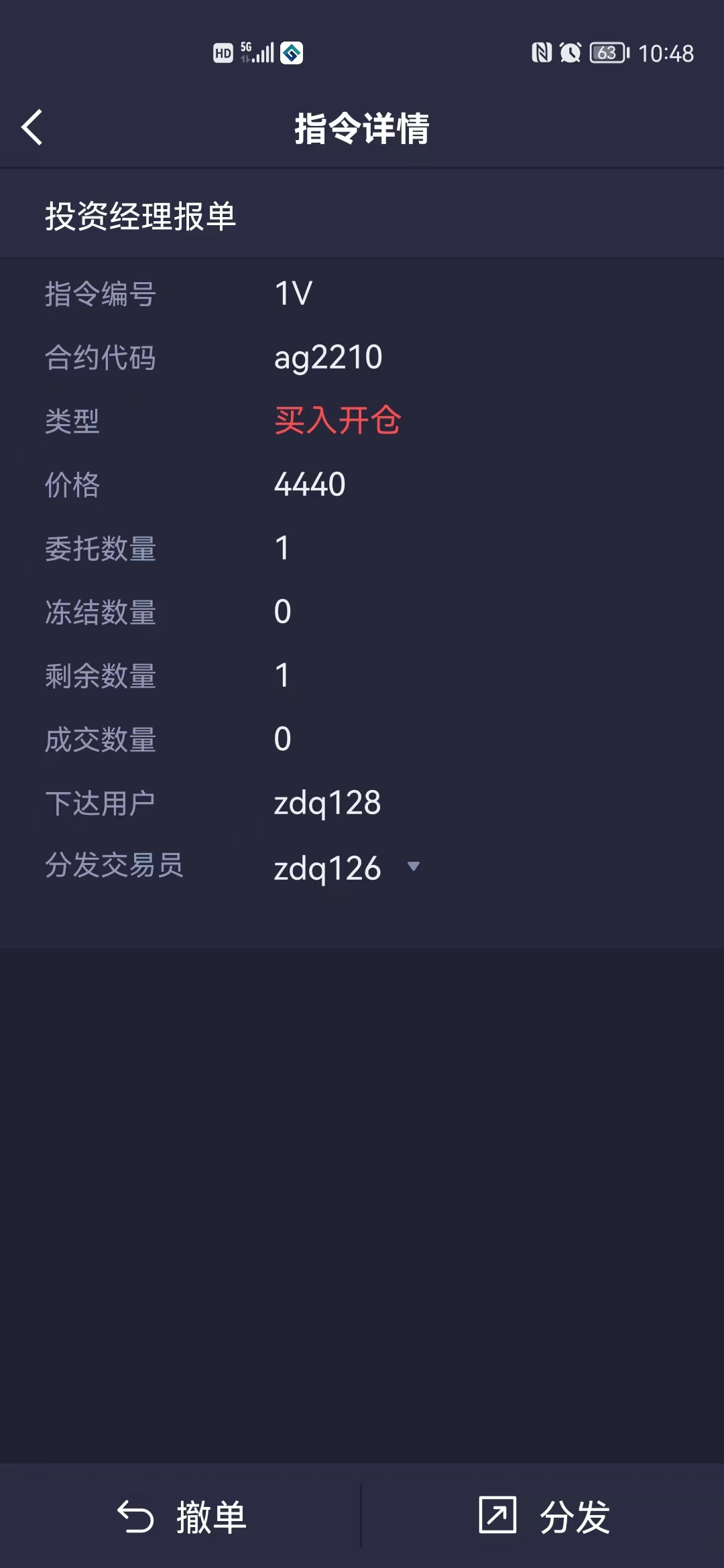 3.交易员zdq126收到交易指令,进行指令下单